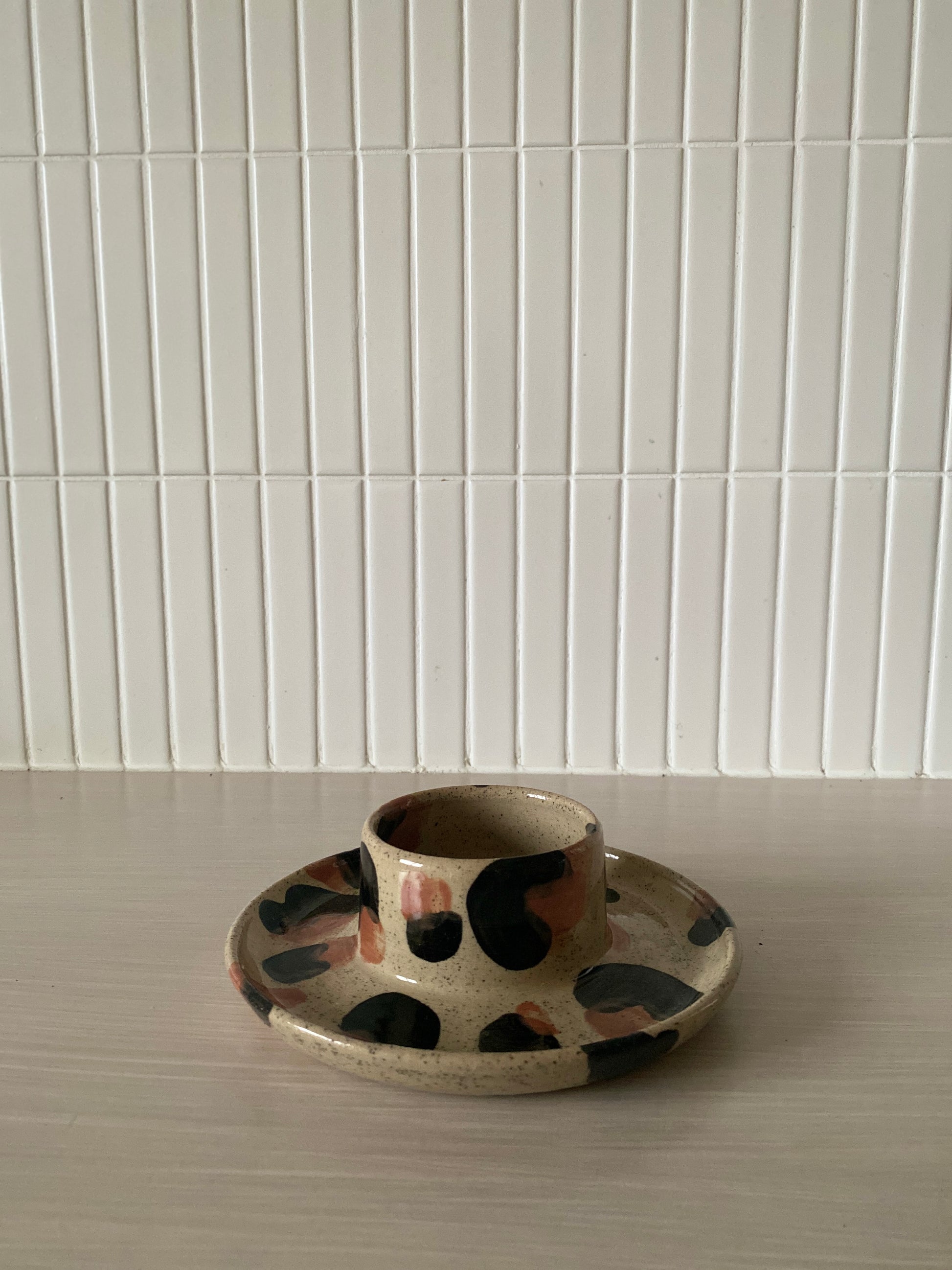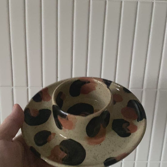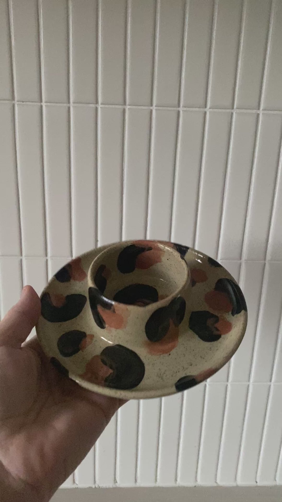 Wheel-thrown from Australian brown clay and adorned with a fabulous leopard print glaze, it's the ultimate companion for antipasto, cheese, charcuterie, and whatever else you're in the mood for.