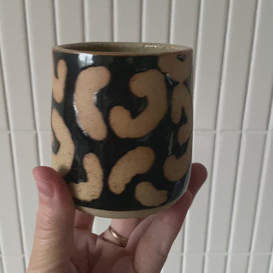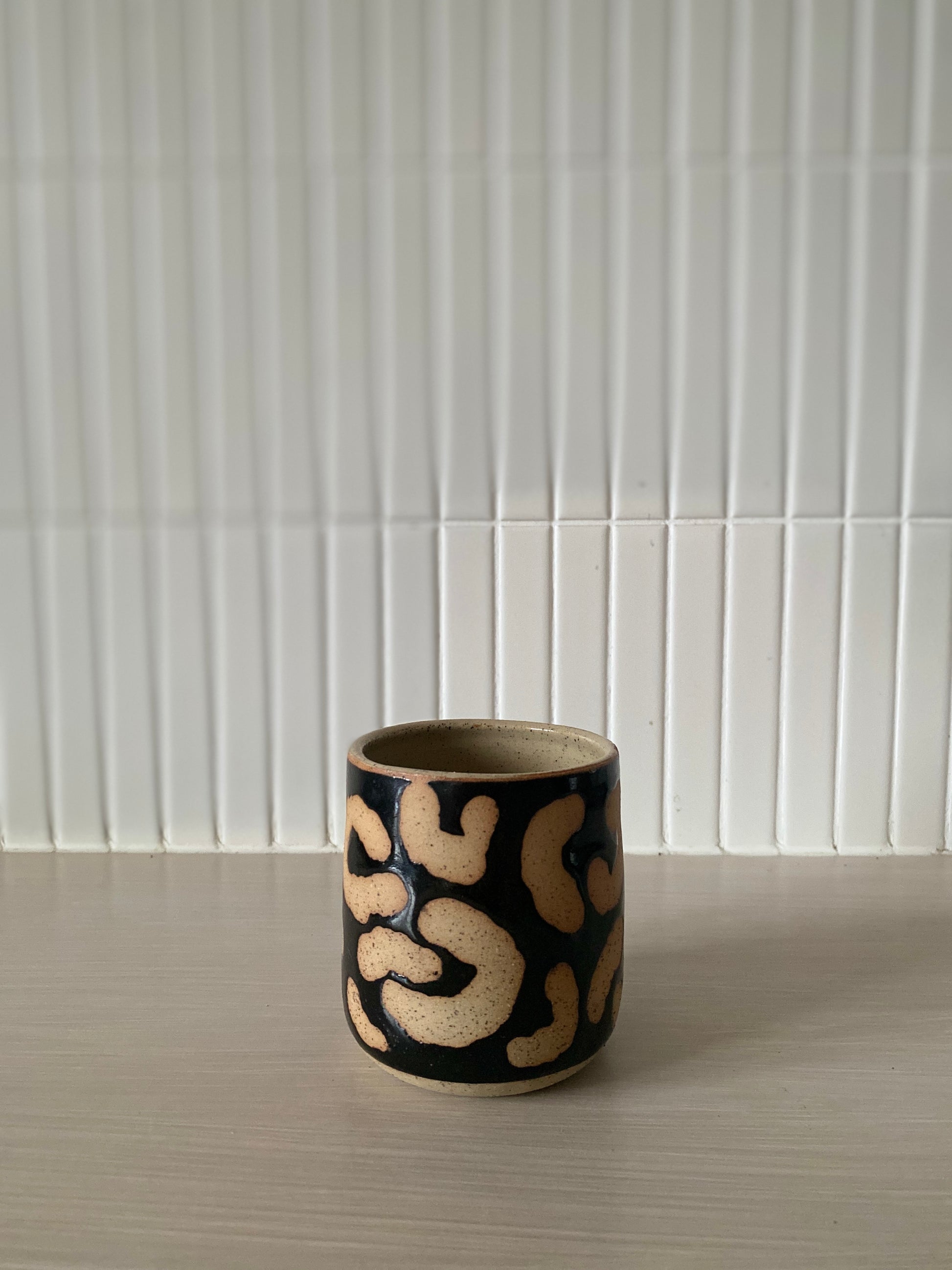 Add a dash of wild style to your morning with this 265ml wheel-thrown cup, featuring a playful black glaze with resist technique that creates a fun leopard print finish.