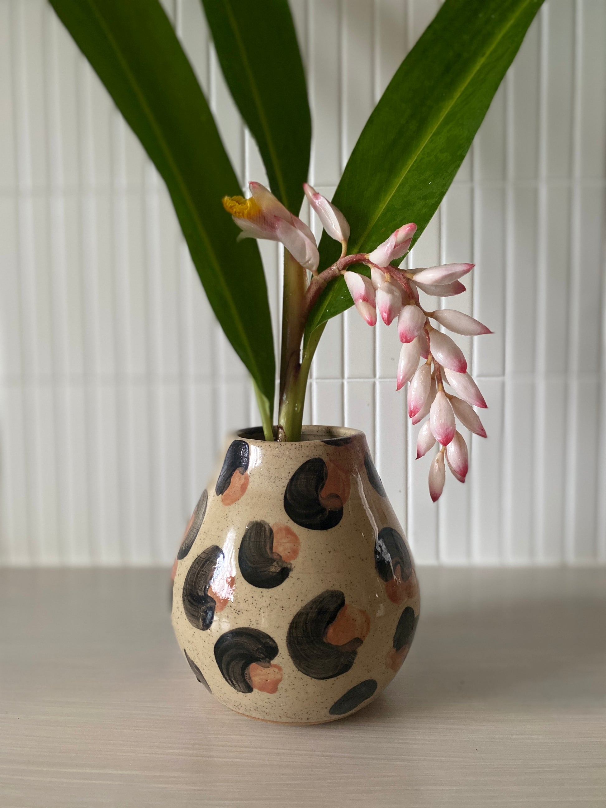 Lovingly wheel-thrown from Australian brown clay in our studio, it showcases a fabulous leopard print glaze that effortlessly blends retro vibes with contemporary cool.